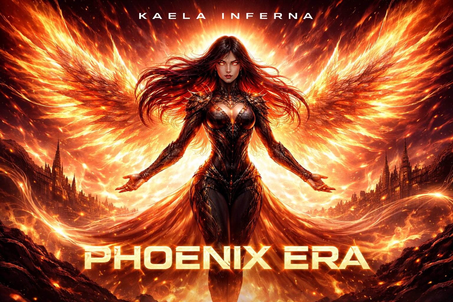 Her discography spans 4 albums: Crown of Fire, Phoenix Era, Digital Rebellion, and Aurora Rising — 41 tracks that chart a journey through resilience, identity, rebellion, and finally, peace.